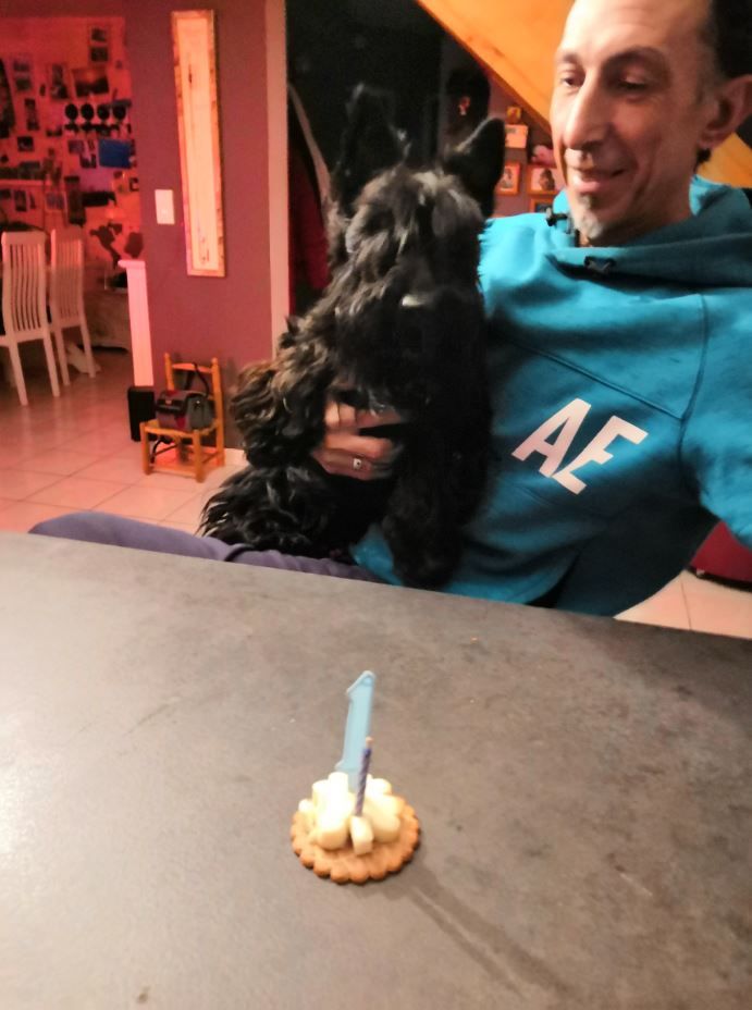 Bonsoir Mr Bonnenfant, une petite photo d'Oscar devant sa 1ère bougie et un petit gâteau. Il est adorable et très câlin. Bonne soirée. Amitiés. Olivier et M...
